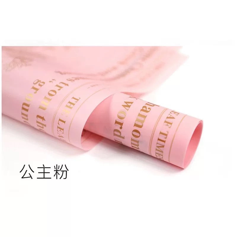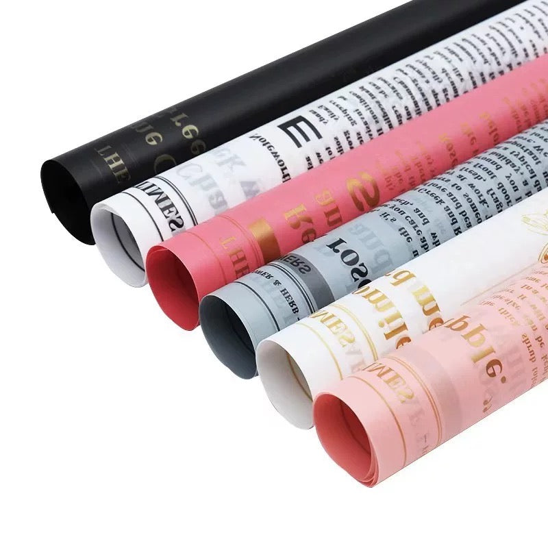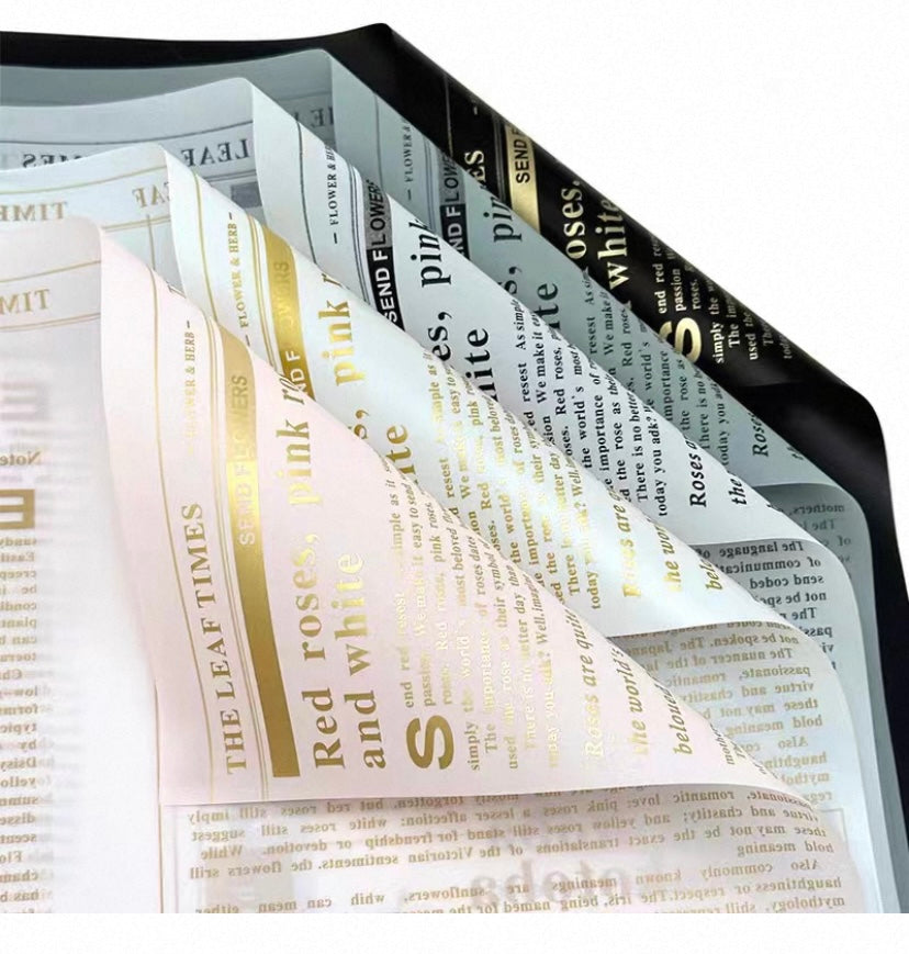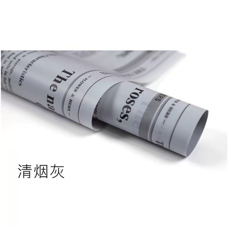 Unique newsprint floral paper in PVC, showcasing a variety of flowers with elegant text details.
