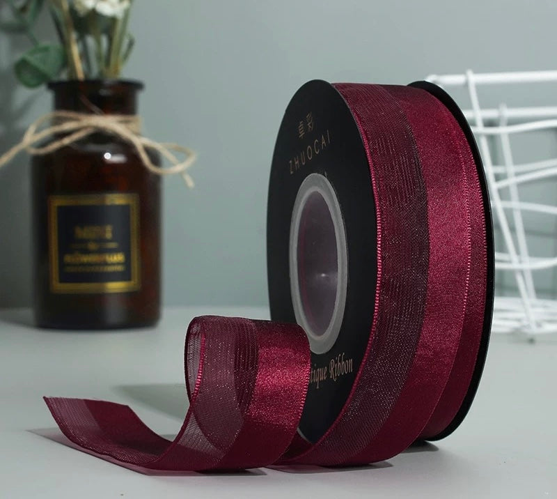 A unique ribbon made with half silk and half soft yarn, blending smooth sheen with a cozy texture—perfect for elegant yet tactile decoration.