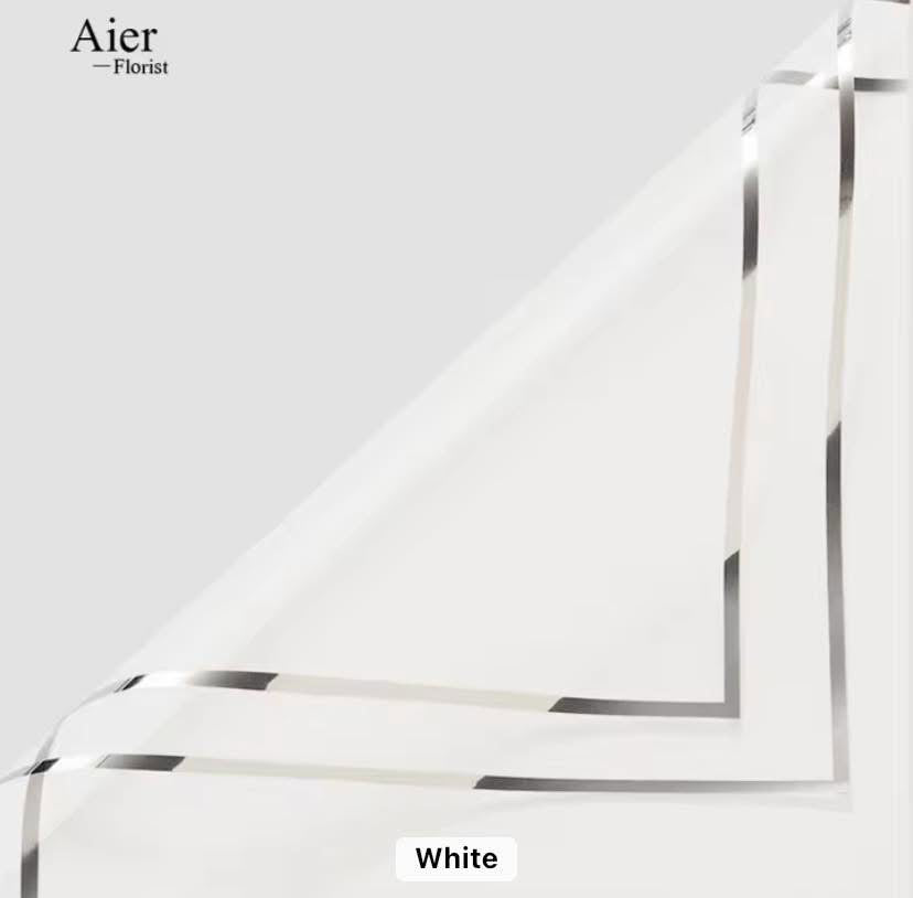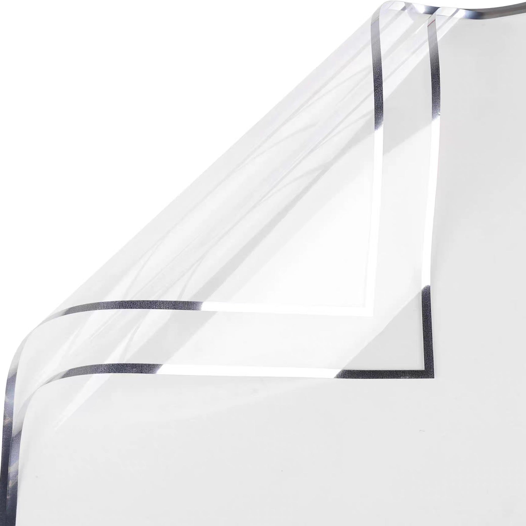 A sleek, semi-transparent PVC jelly film sheet accented with a metallic silver border. Ideal for modern gift wrapping, floral packaging, or creative crafts. Waterproof, flexible, and adds a clean, elegant finish to any presentation.